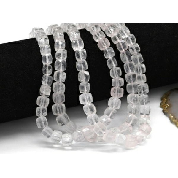 Бусины из розового кварца кубик гр.6-7мм, 45см, 66 бусин, 41,7г