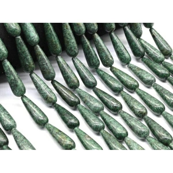 Бусины из кварца (имитация цоизита) капля 10*30мм, 40см, 13 бусин
