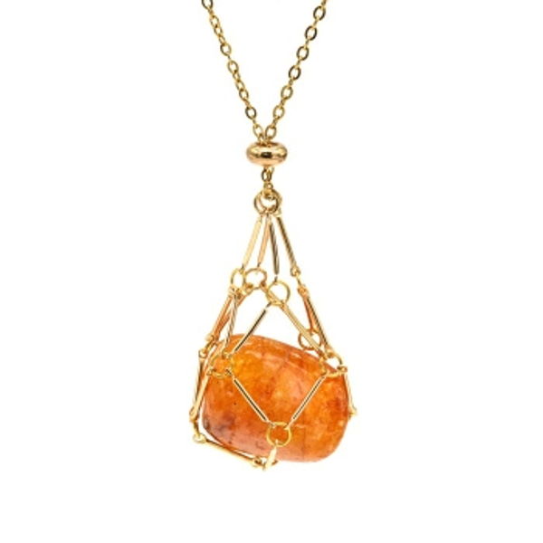 Кулон из кварца желтого в сетке на цепочке, цвет золотистый, 44см