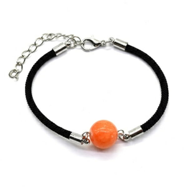 • Браслет на шнурке с кварцем шарик 12мм цвет оранжевый, 18см