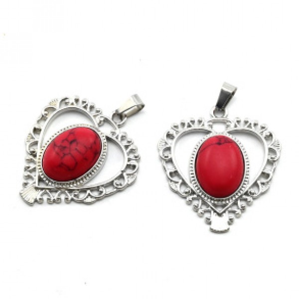 • Кулон в виде Сердца 35*38мм с кораллом искусственным (иск.)