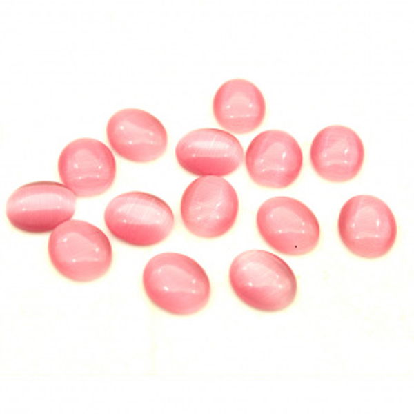 Кабошон кошачий глаз(иск.) овал розовый, 10*12*3,5мм.