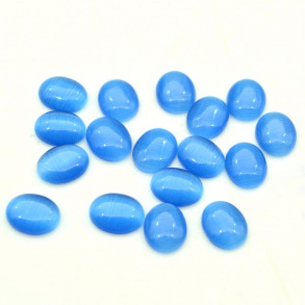 Кабошон кошачий глаз(иск.) овал синий, 8*10*3мм.
