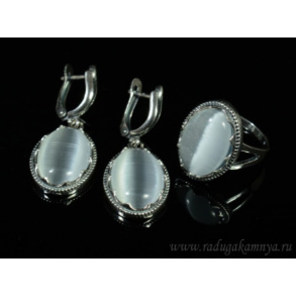 Кольцо и серьги с кошачьим глазом, цвет белый