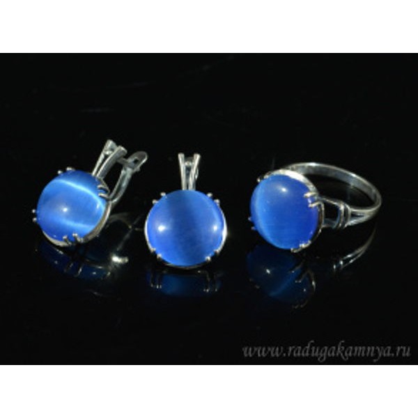 • Кольцо и серьги с кошачьим глазом, цвет синий  (иск.)
