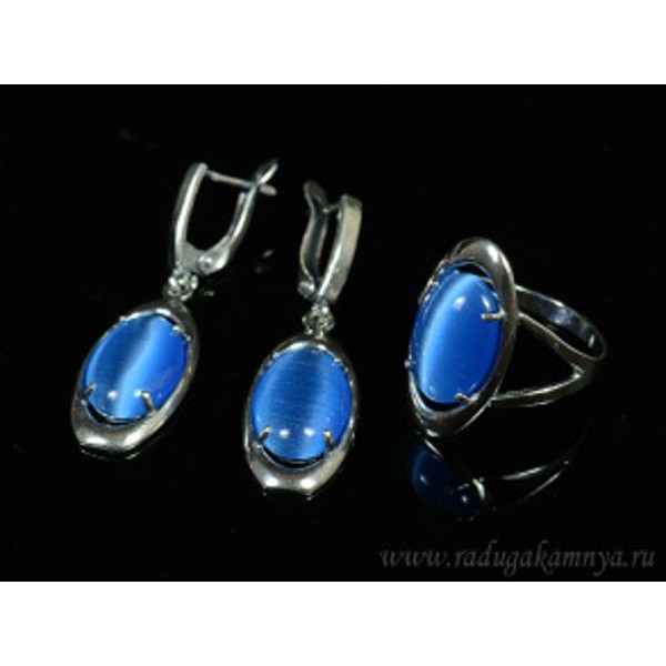 Кольцо и серьги с кошачьим глазом, цвет синий (иск.)