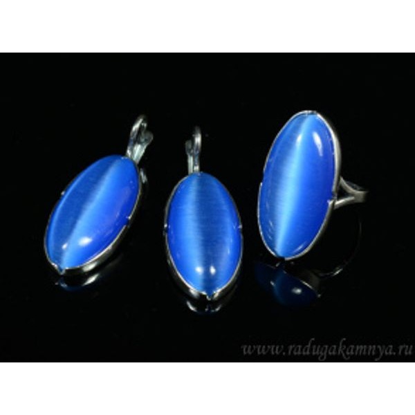 Кольцо и серьги с кошачьим глазом, цвет синий (иск.)