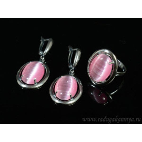 Кольцо и серьги с кошачьим глазом, цвет розовый..
