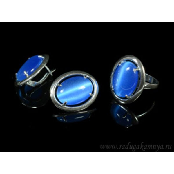 Кольцо и серьги с кошачьим глазом, цвет синий (иск.)