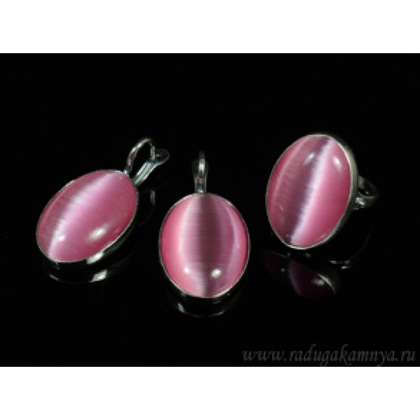 Кольцо и серьги с кошачьим глазом, цвет розовый..