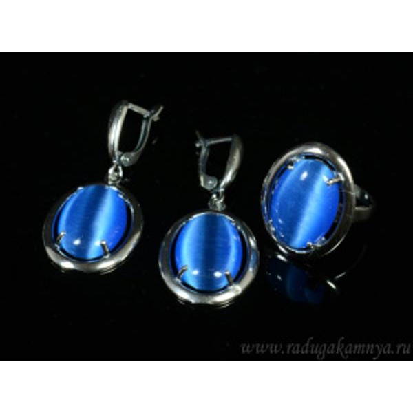 • Кольцо и серьги с кошачьим глазом, цвет синий  (иск.)