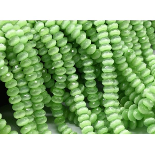 Бусины из кошачьего глаза (синт.) (улексит) рондель гр.7*5мм цвет зеленый светлый, 40см, 88 бусин (иск.)