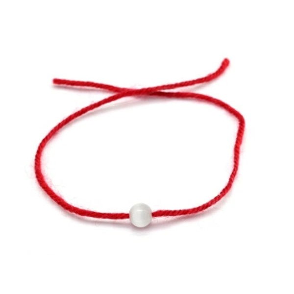 Браслет красная нить с улекситом (кошачий глаз), шарик 6мм, 33см. (иск.)