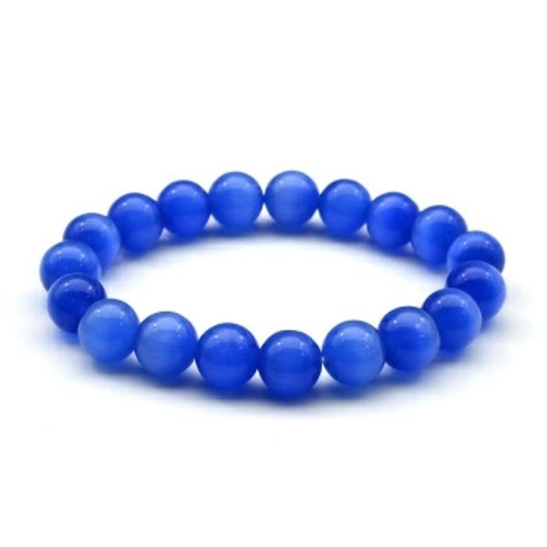Браслет шарик 10мм из кошачьего глаза (синт.) цвет синий, 15см (иск.)