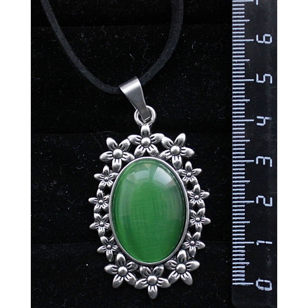 Кулон изкошачьего глаза (синт.), цвет зеленый травяной, овал 25х18мм, оправа "клумба"