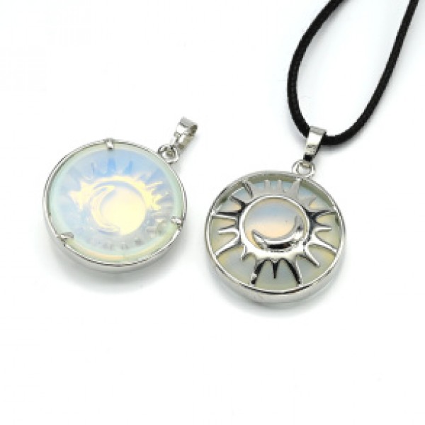Кулон Солнце двусторонняя в металле с лунным камнем 27*27мм (иск.)