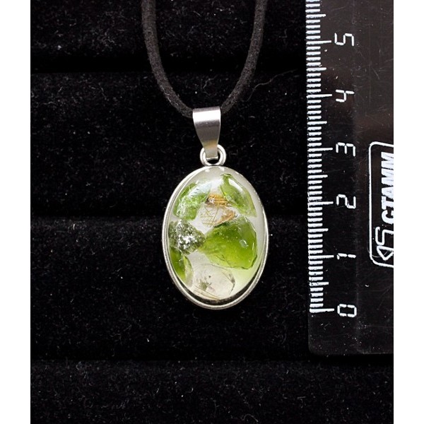 Кулон из хризолита (кабошон-мозаика), простой овал..