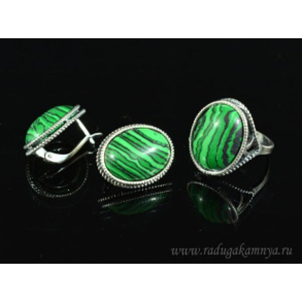 Кольцо и серьги с малахитом (имитация) (иск.)