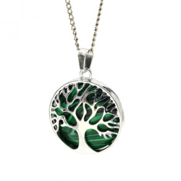• Кулон Дерево двусторонняя в металле с малахитом (имитация) 27*27мм