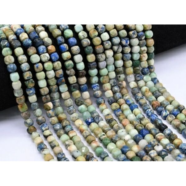 Бусины из азурмалахита кубик гр.6мм, 40см, 69 бусин