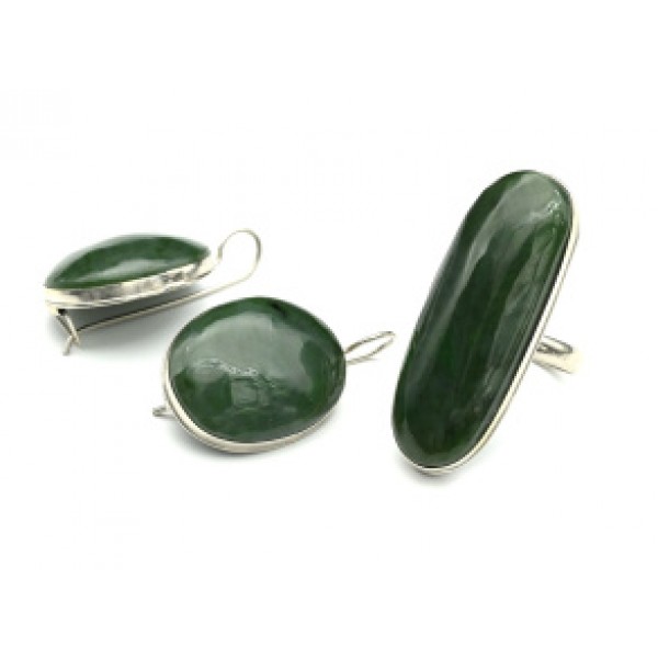 • Кольцо и серьги нефрит "Овал"