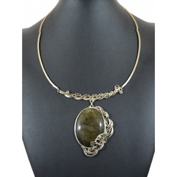 Колье обсидиан " Овал " 48*64мм, 49см.