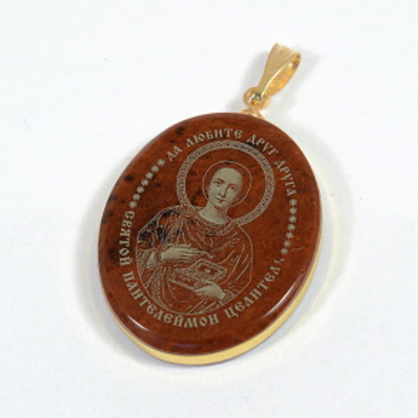 Кулон из обсидиана овал с окантовкой " Пантелеймон" 20*30мм