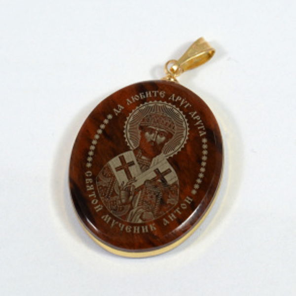 • Кулон из обсидиана овал с окантовкой " Св. Антон " 20*30мм