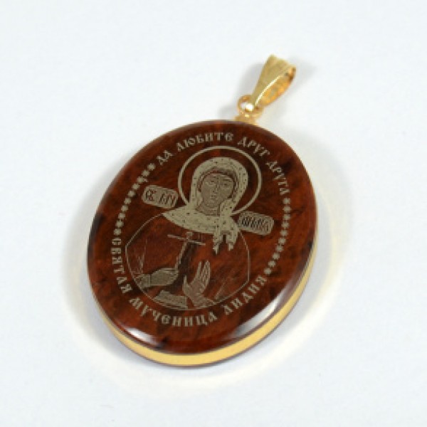 Кулон из обсидиана овал с окантовкой " Св.Лидия " 20*30мм