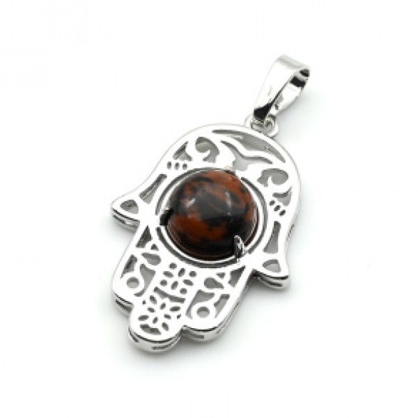 • Кулон Рука Фатимы 22*30мм с обсидианом в оправе из ювелирного сплава