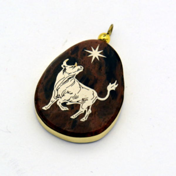 • Брелок-Кулон из обсидиана знак зодиака "Телец" 20*25мм