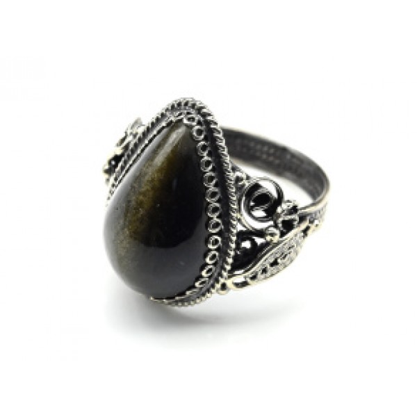 Кольцо золотой обсидиан "Капля" 15*23мм