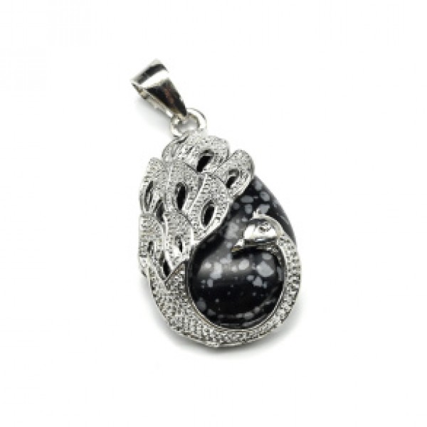 Кулон с обсидианом снежным искусственным Птица 20*30мм