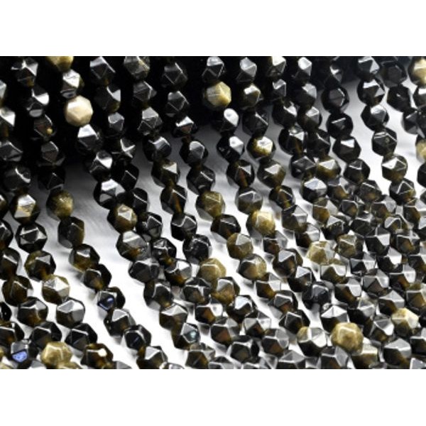 Бусины из обсидиана золотого многогранник 5мм, 36см, 64 бусины