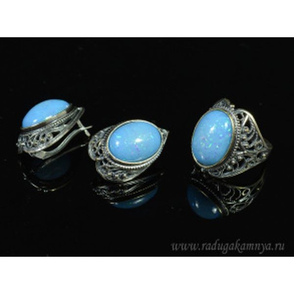• Кольцо и серьги с опалом искусственным, цвет лазурный