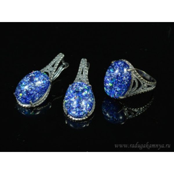 • Кольцо и серьги с опалом искусственным, цвет синий