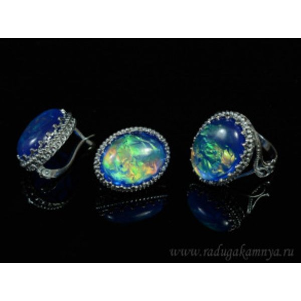 • Кольцо и серьги с опалом искусственным, цвет синий
