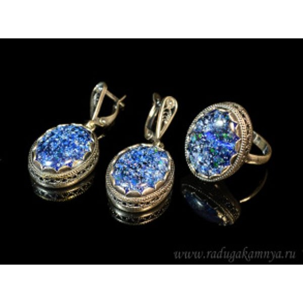 • Кольцо и серьги с опалом искусственным, цвет синий