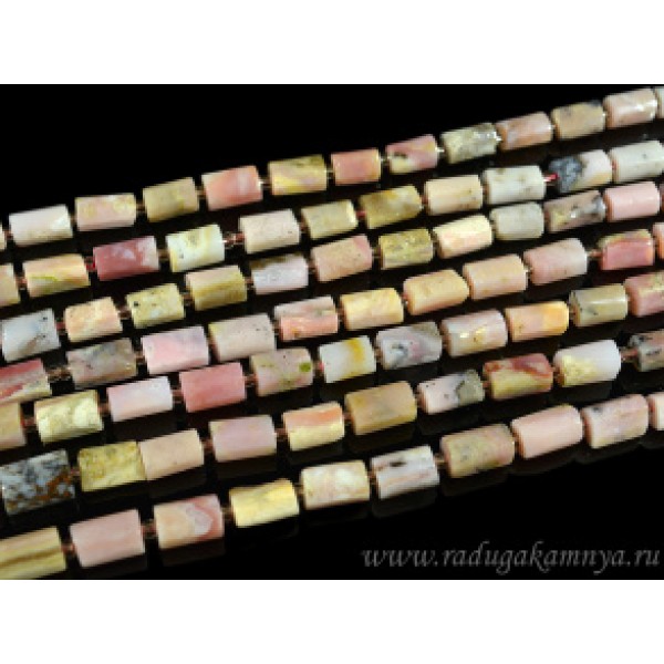 • Бусины из опала розового цилиндр с гранями 6*10мм, 38см, 30 бусин