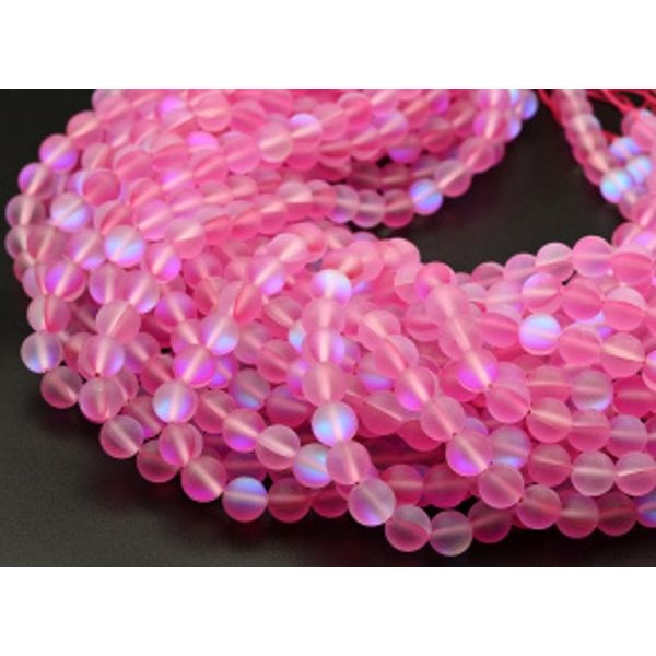 Бусины из опала искусственного шарик 8мм матовый цвет фуксия, 37см, 46 бусин