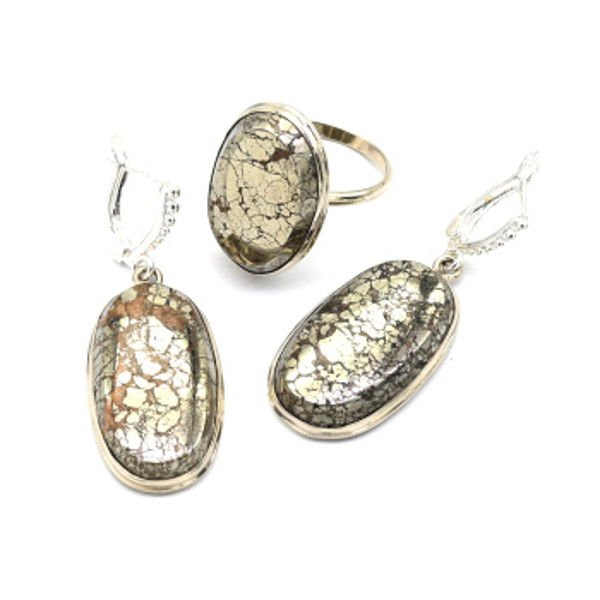 Кольцо и серьги пирит "Овал"