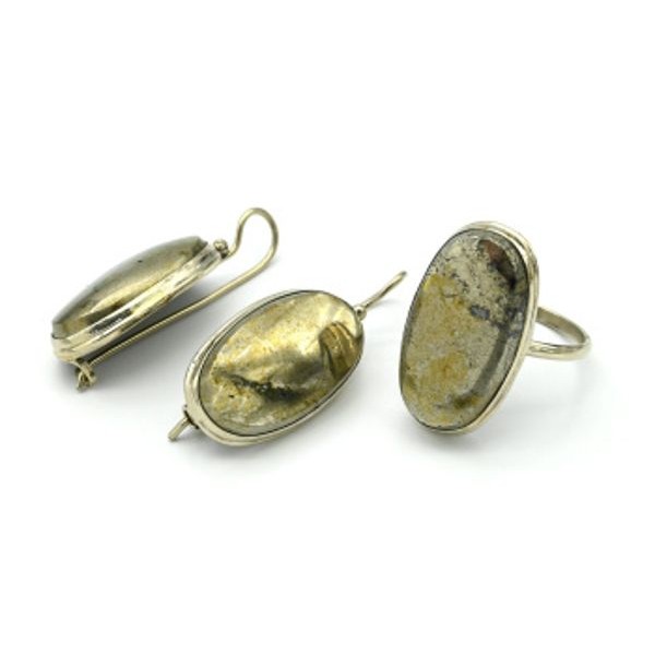 Брошь из пирита (мозаика) "солнышко", овал 25х18мм..