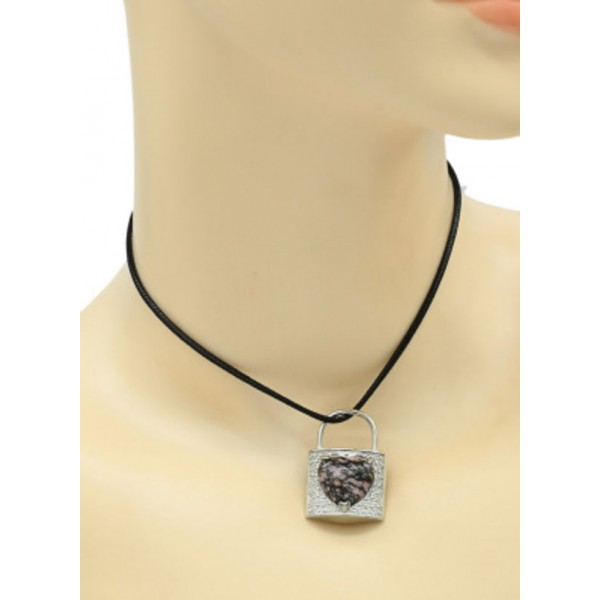 Кулон в виде Замка с сердцем 22*31мм с родонитом в металле