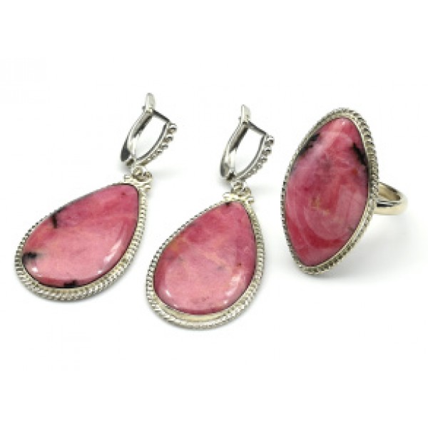 Кольцо и серьги с родонитом