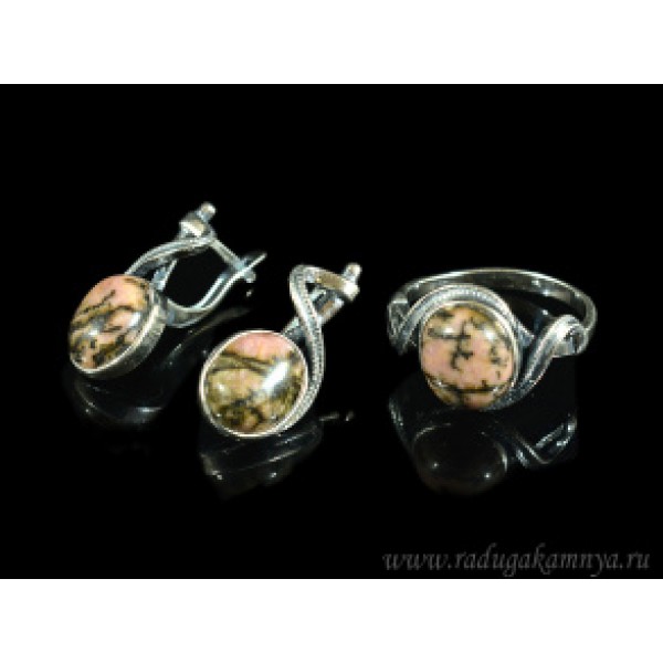 Кольцо и серьги с родонитом