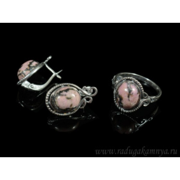 Кольцо и серьги родонит грация..