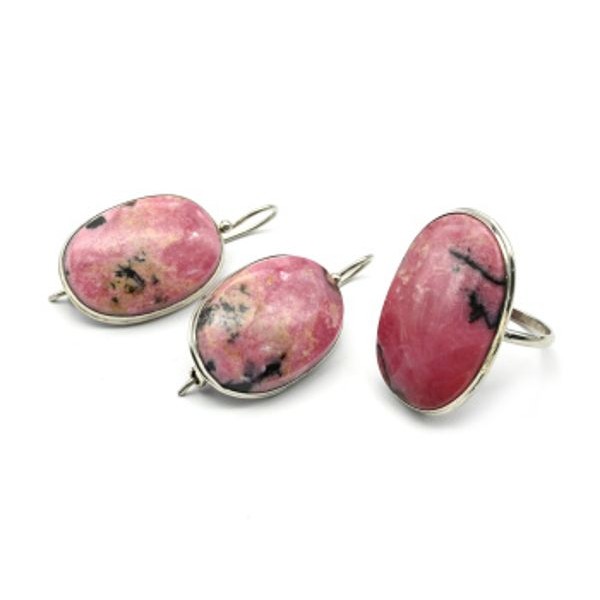 Кольцо и серьги родонит "Овал"