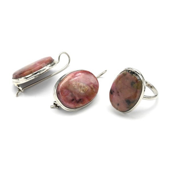 Брошь с родонитом в посеребрении овал 51*42мм.