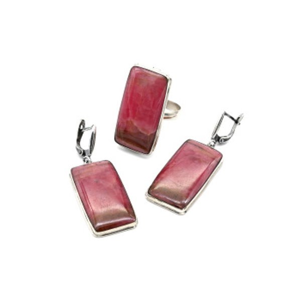 • Кольцо и серьги родонит "Орлец" прямоугольник