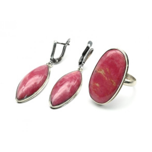 Кольцо и серьги с родонитом "Орлец"